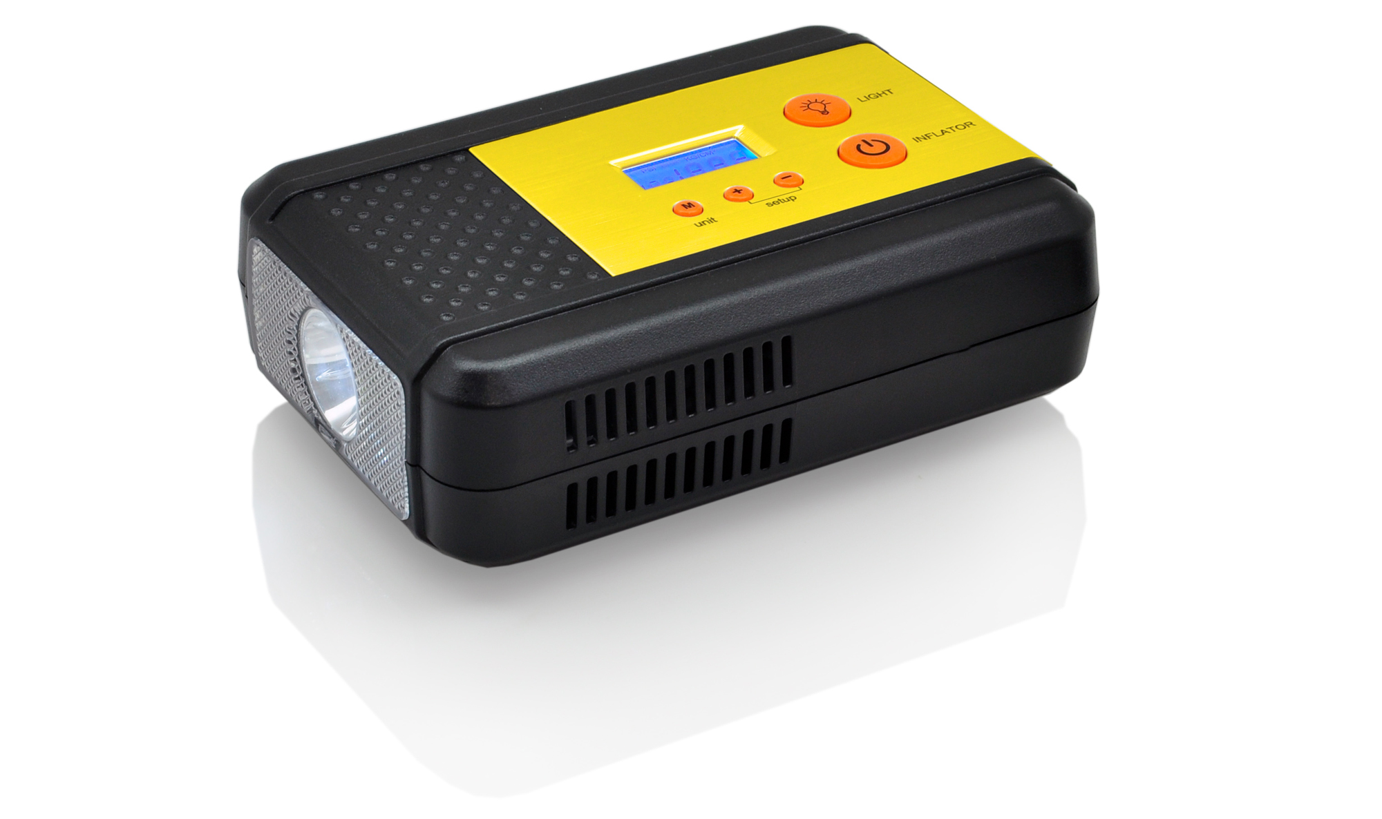 Этот компактный компрессор с цифровым манометром оптимален для легковых автомобилей и мототехники. На фронтальной панели находится большой ЖК-дисплей с синей подсветкой и кнопками управления электронным манометром. Встроенный светодиодный фонарик пригодится в темное время суток. Различные насадки на шланг позволяют накачивать не только автомобильные шины, но и другие надувные изделия.