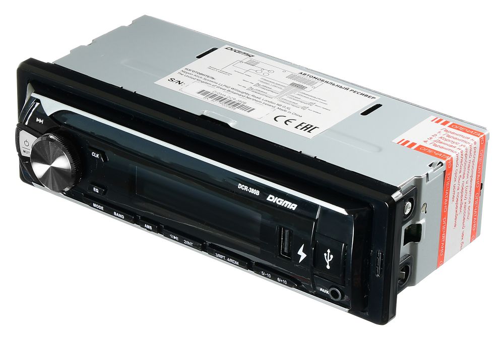 1DIN, USB-проигрыватель, USB, карты памяти, усилитель 4x45 Вт, экран монохромный