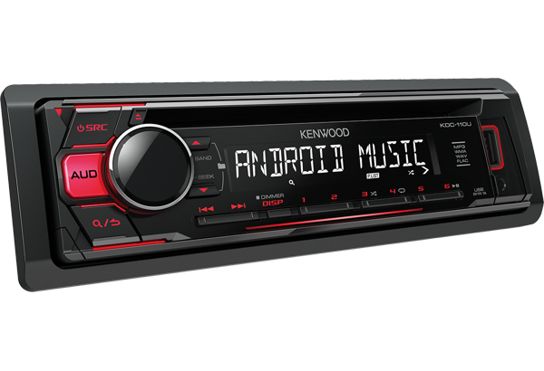 Kenwood KDC-110UR Красная подсветка, 1 пара лин вых, 3-полосный парам. эквалайзер, FLAC, Android