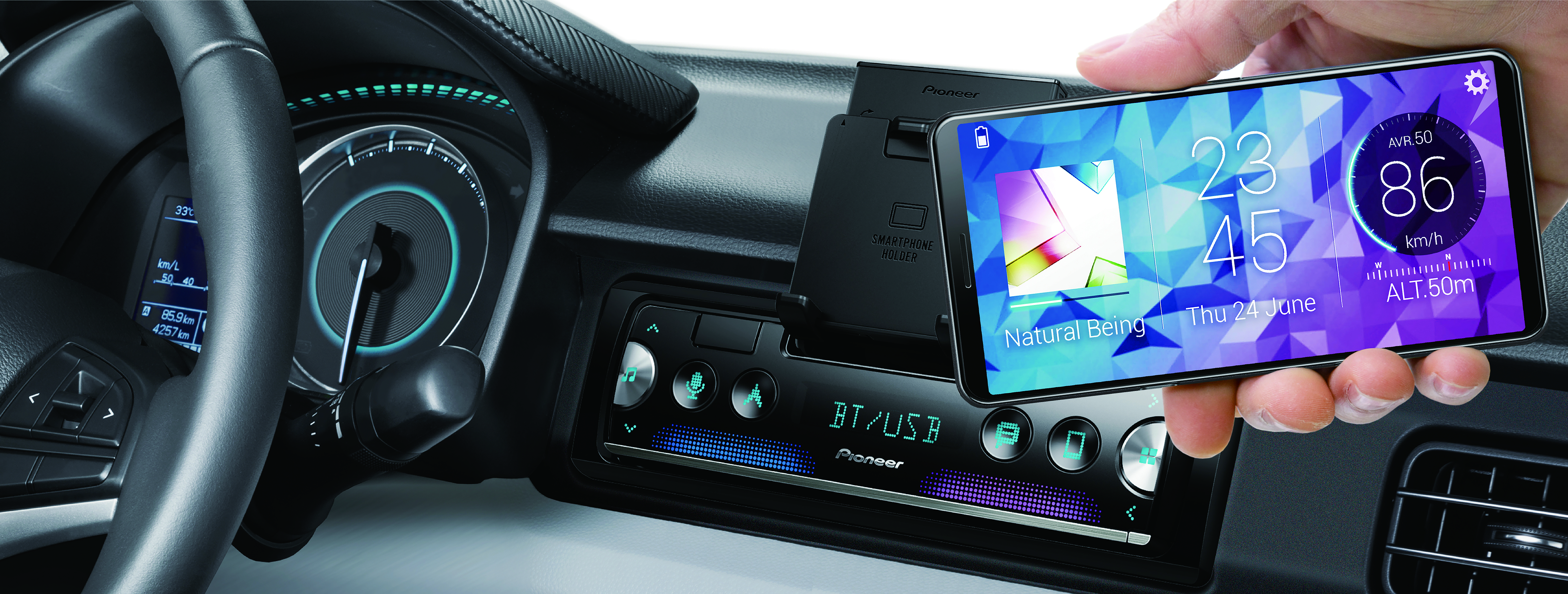 Приемник для смартфона* SPH-10BT Pioneer создан для безопасного и простого доступа к приложениям смартфона при помощи четырех специальных кнопок. Безопасное вождение обеспечивается такими опциями как распознавание голоса. Новое приложение Pioneer Smart Sync подключает дополнительные функции подсветки, настройки и корректировки идеального звука. Подключите смартфон через встроенный функциональный держатель и активизируйте бесплатное приложение Pioneer Smart Sync, которое действует в проводном и беспроводном режиме, чтобы предоставить вам все возможности умного вождения. Система разработана специально для простого и безопасного вождения: доступ ко всем приложениям в одно касание и голосовое управления многих функций.