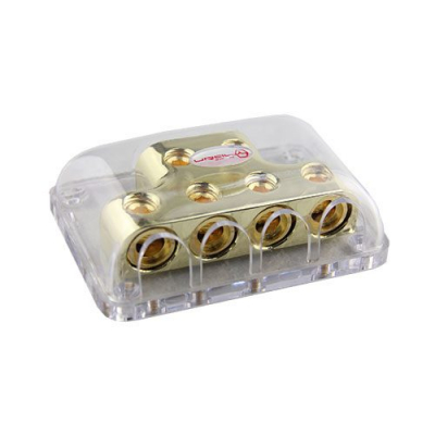 Высококачественные распределители питания серии Decibel для установки сразу нескольких автомобильных усилителей. Выполнен из позолоченного цинкового сплава.