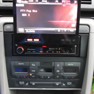 Переходная рамка Audi A4 (B6) номер RAU3-00 подходит для установки 1-диновой магнитолы в автомобили Ауди А4 2000-2006 годов выпуска. Замена старого радио на более современный аппарат, понимающий новые форматы и оснащенный модулем Блютуз, проблема с которой рано или поздно сталкивается любой владелец автомобиля выпуска первого десятилетия XXI века. Не очень то удобно пользоваться одним радио, а что касается громкой связи, то это уже давно обязательная утвержденная законом норма. К сожалению, высота штатной магнитолы не позволяет установить большой мультимедийный аппарат, хотя для такого случая можно воспользоваться моделью с выездным экраном
