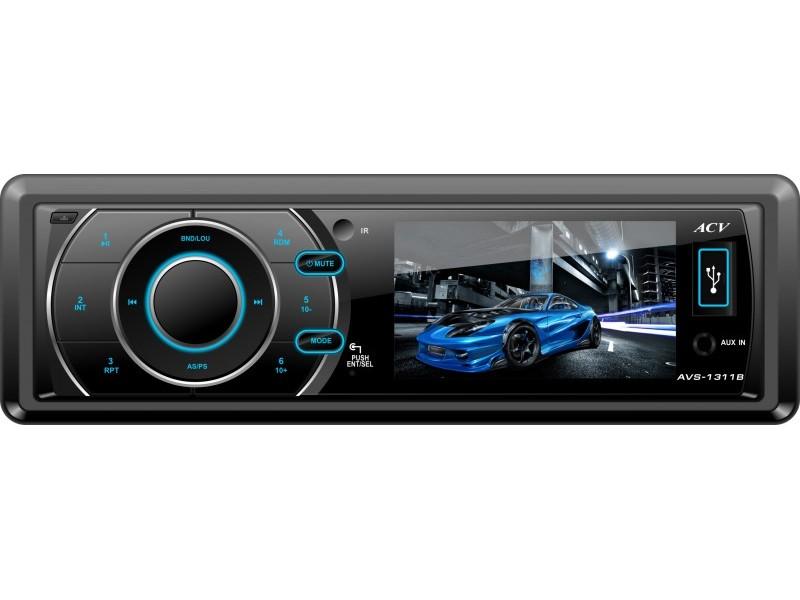 1DIN, USB-проигрыватель, USB, карты памяти, усилитель 4x50 Вт, экран 3" цветной, пульт