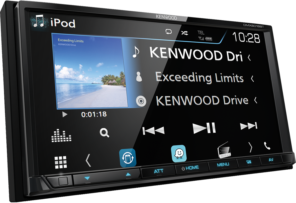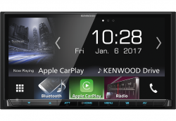 Kenwood DMX100 2 DIN Мультимедиа без диска, 50Втх4, высококачественный сенсорный экран wVGA (800x480) с диагональю 6,8", уверенный прием радиосигнала, тыловой вход USB с током зарядки до 1А, управление iPod/iPhone, воспроизведение аудио МР3/WMA и видео MPEG1,2,4, 7-полосный графический эквалайзер, 3 пары линейных выходов 2В, встроенный бас-буст, вход для камеры заднего обзора, 1 AV-вход, 1 видеовыход, возможность подключения кнопок на руле автомобиля