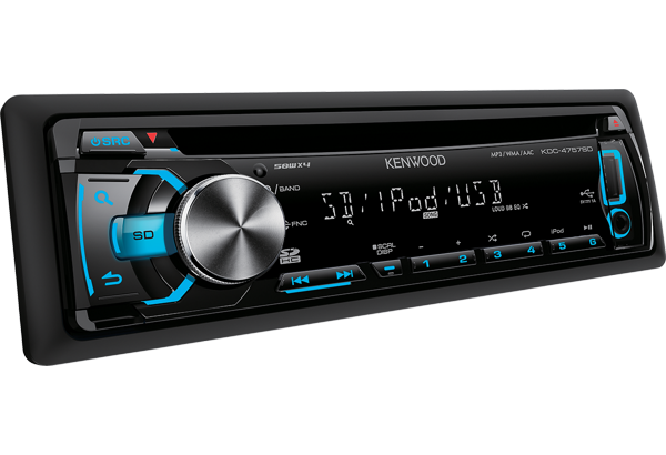 Kenwood KDC-4757SD MP3/WMA/AAC, 4 х 50 Вт MOS-FET, управление iPod/iPhone, съемная передняя панель, SD-слот, "Radio Data System" тюнер с функцией "radio text", отображение русскоязычных тегов, 3 RCA-выхода (2.5 В) -тыловой/сабвуфер(переключаемый), Цифроаналоговый преобразователь 24 бит, Подсвечиваемые фронтальные входы AUX и USB (со сдвижной защитной крышкой), Bass Boost, Supreme, Low-pass-Filter, Loudness, 13-симв. FL дисплей, изменяемая подсветка кнопок, Совместимость с ПО "Kenwood Music Control" для Android, Интерфейс подключения штатного ПДУ на руле.