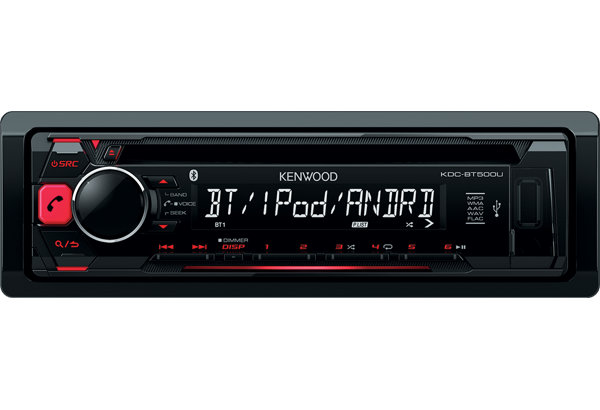 Kenwood KDC-BT500U Bluetooth, Красная подсветка, FLAC, USB 1,5A, iPhone, Android, 1 лин вых, 13-пол.экв.