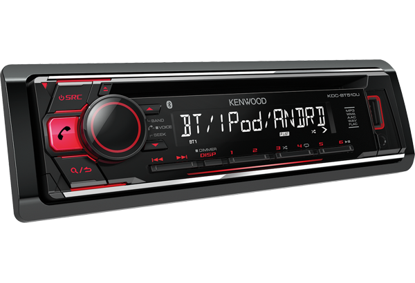 Kenwood KDC-BT510U Bluetooth, красная подсветка, 1 пара линейных выходов, USB 1,5A, 13-полосный EQ, DTA, управление iPod/iPhone и Android, 3-полосный кроссовер, FLAC до 24бит/48кГц, управление настройками через приложение