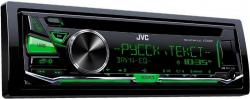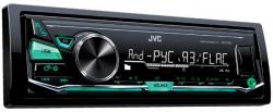 JVC KD-R487 FLAC CD-MP3-ресивер с поддержкой русского языка (выбрать в меню) и поддержкой УКВ диаппазона, USB-входом с усилителем MOS-FET, 3-полосным эквалайзером и Зеленой подсветкой кнопок, 50 Вт х 4 канала (макс при КНИ <=1%) и 22 Вт х 4 (RMS), ФНЧ и тонкомпенсация, Вход USB и AUX, Cъемная передняя панель, Разъем для управления кнопками на руле автомобиля при помощи адаптеров Paser, Таймер на включение радиопрограммы однократный, ежедневный, еженедельный; Память на радиостанции на случай отключения питания, Совместимость с форматами записи MP3, WMA и WAV (только с USB), Случайный выбо