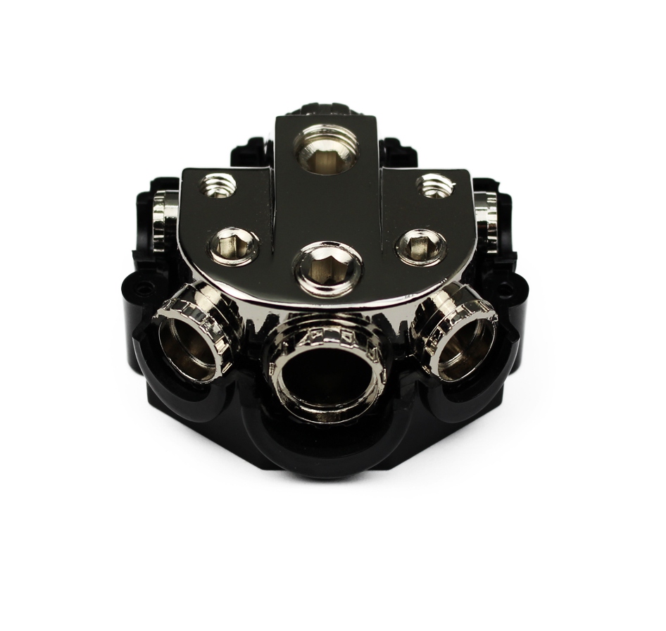 Высококачественные распределители питания серии Decibel для установки сразу нескольких автомобильных усилителей. Выполнен из позолоченного цинкового сплава.