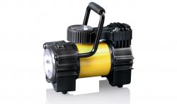Этот поршневой высокопроизводительный компрессор отлично справится с шинами легковых автомобилей, мотоциклов, велосипедов и легкого коммерческого транспорта. Устройство имеет компактные размеры и незначительный вес. Питается от штатного гнезда прикуривателя автомобиля с напряжением 12 вольт с подключением к электросети автомобиля через гнездо прикуривателя и защитой от короткого замыкания на проводе. Сам провод питания после применения устройства аккуратно наматывается на ножки. На корпусе компрессора установлен механический манометр с двумя шкалами измерения: «Атм» и «PSI», а специальный клапан-дефлятор поможет отрегулировать давление в шинах. Кроме того, компрессор снабжен светодиодным фонарем, который поможет работать с устройством в темное время суток. Благодаря наличию переходников компрессор можно использовать также для накачки воздушных матрасов, игрушек и мячей. Компрессор прячется в удобную сумку для хранения и переноски.