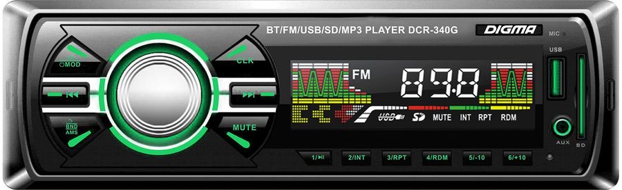1DIN, USB-проигрыватель, USB, карты памяти, Bluetooth, усилитель 4x45 Вт, экран монохромный