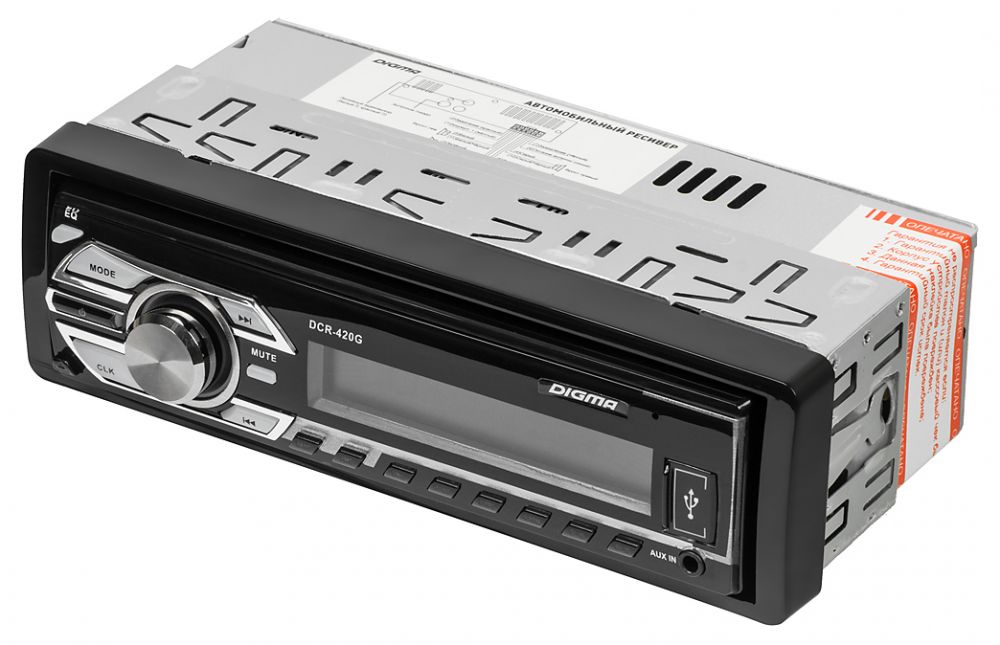 1DIN, USB-проигрыватель, USB, карты памяти, усилитель 4x45 Вт, экран цветной