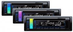 JVC KD-R889BT Bluetooth, FLAC, CD, USB ресивер с Новым FLAT дизайном в тёмно-синем исполнении корпуса c поддержкой IPod/IPhone, c мультиизменяемой подсветкой клавиши доступа (цвет кнопок белый), 3 полосный кросовер с поканальным подключением акустики, Временные задержки, Вход USB и AUX, Cъемная передняя панель, Таймер на включение радиопрограммы (однократный, ежедневный, еженедельный), Тюнер с цифровой обработкой с диапазоном FM (87,5-108 МГц) и диапазонами AM (СВ 531-1620 кГц, ДВ 153-279 кГц), Память на радиостанции на случай отключения питания, Совместимость с форматами записи MP3 и WMA, Функция проверки совместимости, Возможность подключения 5 телефонов по Bluetooth одновременно в режиме моментального воспроизведения, Звонки "без рук" (HFP1.6), передача телефонной книги и подключение к телефонной книге (PBAP1.0), Потоковое воспроизведение аудио и управление воспроизведением (A2DP1.2, AVRCP1.3), iPhone и Android автоматическая синхронизация по Bluetooth при подключении по USB, Режим Siri E-Free для iPhone/iPod, Подключение iPod/iPhone по USB, Вход USB на передней панели, Совместимость с форматами записи MP3, WMA, FLAC и WAV (только с USB), Случайный выбор/повторное воспроизведение, Подача питания 1,5 A на подключенное устройство, Усилитель на полевых транзисторах MOS-FET, 24-битовый цифро-аналоговый преобразователь, Максимальная выходная мощность 50 Вт на 4 канала, Номинальная выходная мощность (RMS) 22 Вт на канал при 4 Ом (допустимо 8 Ом) нагрузки, 40-20000 Гц при не более 1.0% общих гармонических искажений, 13-полосный графический эквалайзер iEQ и память на звуковые настройки по каждому источнику Source Link EQ, Управление громкостью в зависимости от источника, 2 шаблона; Тонкомпенсация; Фильтр низких частот, Переключатель максимального коэффициента усиления,2 Пары линейных выходов c уровнем 4 Вт с регулировкой уровня, переключаемые задние колонки/сабвуфер с регулируемым уровнем и частотой среза, функция прямого подключения саббуфера, Раздельная плавная регулировка яркости дисплея, Автоматический диммер, Управление спомощью смартфонов настройками и воспроизведением с помощью приложения JVC Remote App.