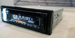 FLAC CD-MP3-ресивер с НОВЫМ FLAT дизайном с изменяемой подсветкой кнопки выбора источника(цвет кнопок и дисплея белый) и с поддержкой iPod/iPhone, русского языка, c USB-входом и усилителем MOS-FET, 3-полосным эквалайзером, 50 Вт х 4 канала (макс при КНИ <=1%) и 20 Вт х 4 (RMS), ФНЧ и тонкомпенсация, Вход USB и AUX, Cъемная передняя панель, Разъем для управления кнопками на руле автомобиля при помощи адаптеров Paser, Таймер на включение радиопрограммы однократный, ежедневный, еженедельный; Память на радиостанции на случай отключения питания, Совместимость с форматами записи MP3, WMA и WAV (только с USB), Случайный выбор/повторное воспроизведение, Подача питания 1A на подключенное устройство, USB mass storage class для музыкальных файлов (кроме NTFS, только 1 раздел, ток 1А), 24-битовый ЦАП, 2 пары линейных выходов c уровнем 2.5 Вт с регулировкой уровня.
