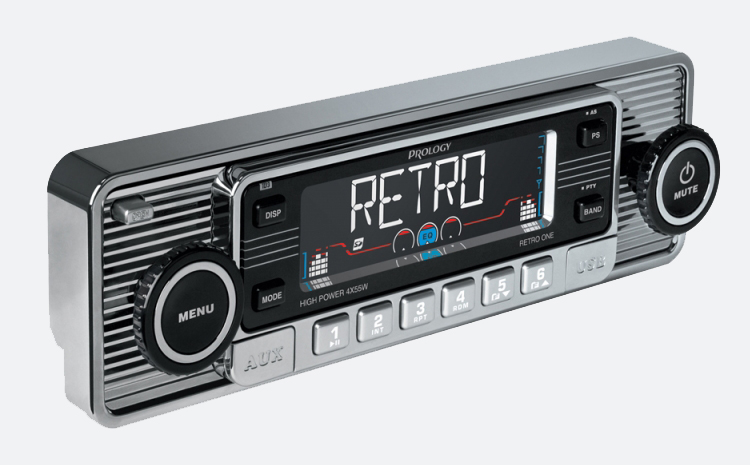 Современный CD/MP3 ресивер в стиле РЕТРО. За полностью съемной передней панелью ресивера, выполненной в стиле «Америка 60-х», находится дископриемник для CD и MP3 компакт-дисков и слот для карт памяти SD. Встроенный цифровой высокоскоростной PLL-тюнер запоминает до 18 радиостанций и поддерживает систему вывода на цветной ЖК-дисплей дополнительной информации RDS-EON. В пути Вы можете слушать любимую музыку прямо с портативного MP3 плеера, для этого на передней панели установлен линейный стереовход Mini-Jack, а благодаря индикатору информации ID3 TAG распознаются английские названия песен и исполнителей. Там же находится слот для флеш-карт с интерфейсом USB. Управляется Prology Retro One двумя рифлеными энкодерами в ретро-стиле, больше похожими на миниатюрное автомобильное колёсико. Левый поворотный энкодер дает доступ к меню управления, настройкам параметров звучания и громкости. Этот же энкодер является кнопкой подтверждения ввода названия песни или номера искомого MP3 файла. Правый энкодер нажимного типа – это кнопка включения и выключения питания, отключения звука MUTE, а также настройка радио и переход к следующему или предыдущему треку.