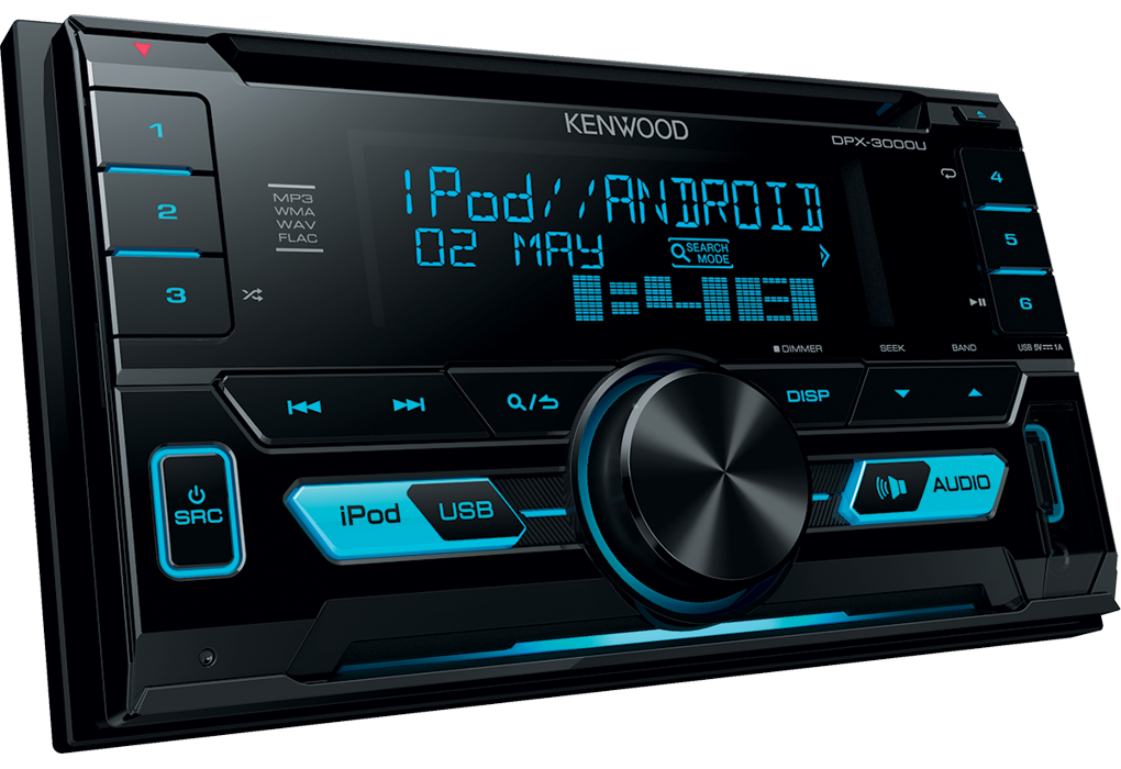 Kenwood DPX-3000U Изменяемая подсветка, FLAC, управление iPhone, Android, 2 пары линейных выходов