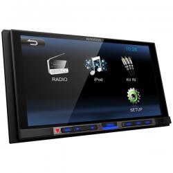 Kenwood DMX100 2 DIN Мультимедиа без диска, 50Втх4, высококачественный сенсорный экран wVGA (800x480) с диагональю 6,8", уверенный прием радиосигнала, тыловой вход USB с током зарядки до 1А, управление iPod/iPhone, воспроизведение аудио МР3/WMA и видео MPEG1,2,4, 7-полосный графический эквалайзер, 3 пары линейных выходов 2В, встроенный бас-буст, вход для камеры заднего обзора, 1 AV-вход, 1 видеовыход, возможность подключения кнопок на руле автомобиля