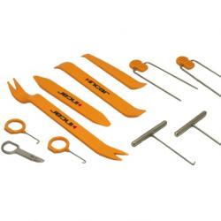 Профессиональный набор инструментов для снятия дверных карт, автомобильных аудиосистем и других элементов. Набор состоит из 12 предметов использование которых позволяет аккуратно демонтировать внутреннюю обивку автомобиля и молдинги для последующего монтажа аудиосистемы. Для изготовления инструментов используется высококачественный полиуретан, инструменты не царапают, не наносят повреждений окрашенным, кожаным, хромированным и другим поверхностям.