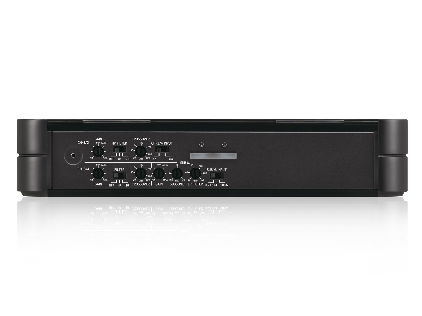 Входная чувствительность: от 0,2 В до 4,0 В (для номинальной мощности) (CH1/2, CH3/4), 0.1 - 4V (Сабвуфер)