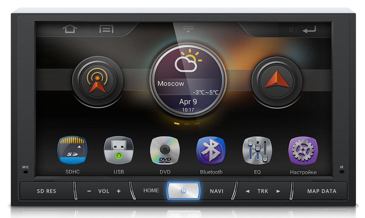2DIN, USB-проигрыватель, USB, карты памяти, Bluetooth, экран 6.8" цветной сенсорный, GPS