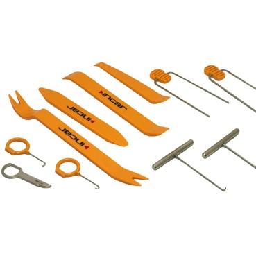 Профессиональный набор инструментов для снятия дверных карт, автомобильных аудиосистем и других элементов. Набор состоит из 12 предметов использование которых позволяет аккуратно демонтировать внутреннюю обивку автомобиля и молдинги для последующего монтажа аудиосистемы. Для изготовления инструментов используется высококачественный полиуретан, инструменты не царапают, не наносят повреждений окрашенным, кожаным, хромированным и другим поверхностям.