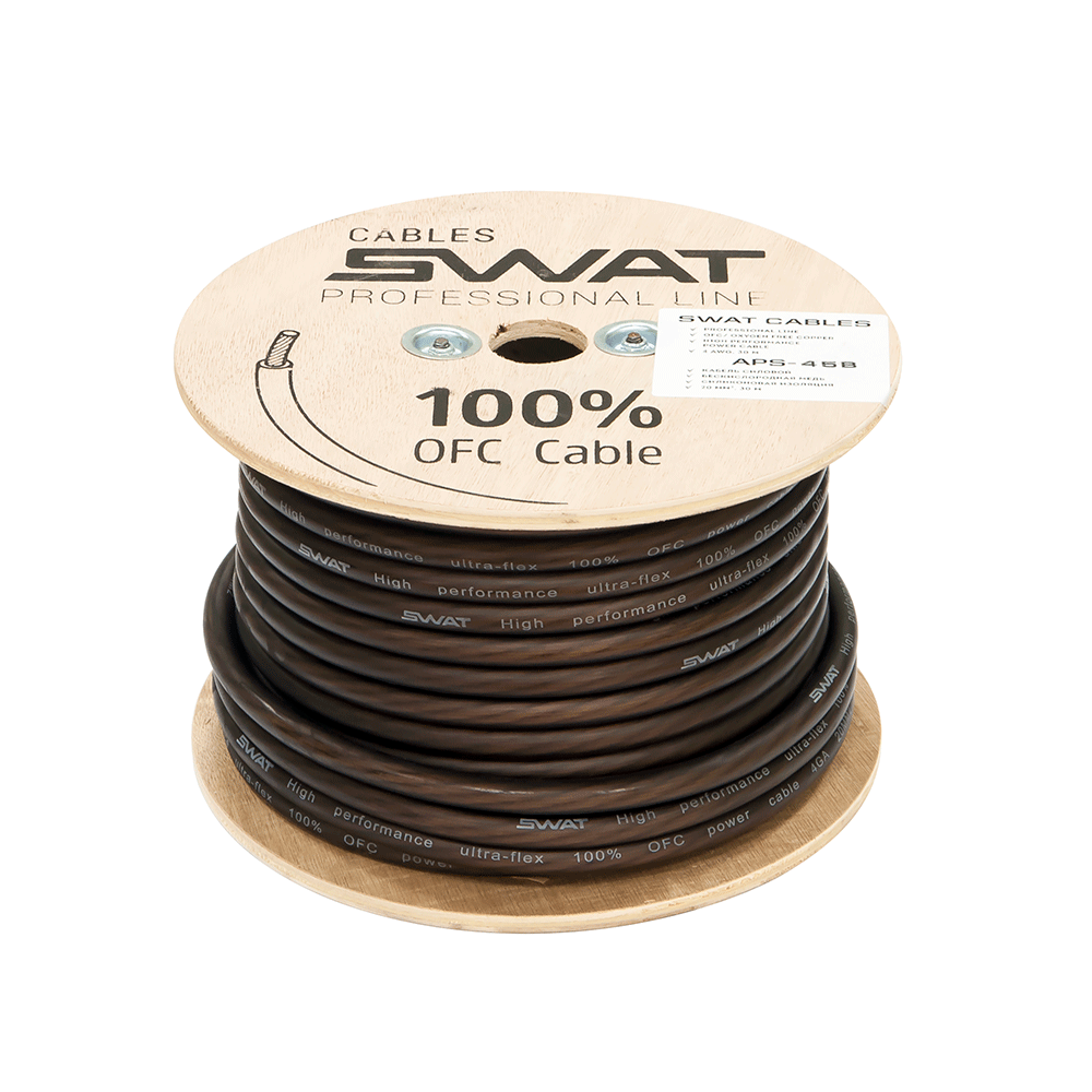 SWAT APS-045B Катушка: 30м силовой кабель 4Ga/20мм-черный(-)