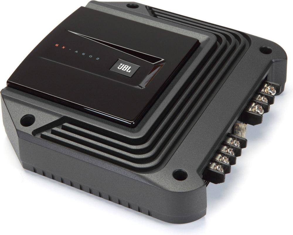 JBL GX-A602 2-кан., Класс AB, 170 Вт х 1 RMS @ 4 Ом, 80 Вт х 2 RMS @ 2 Ом, 60 Вт х 2 RMS @ 4 Ом, фильтр HP/LP 32 – 320 Гц, габариты: 198 x 206 x 51 мм
