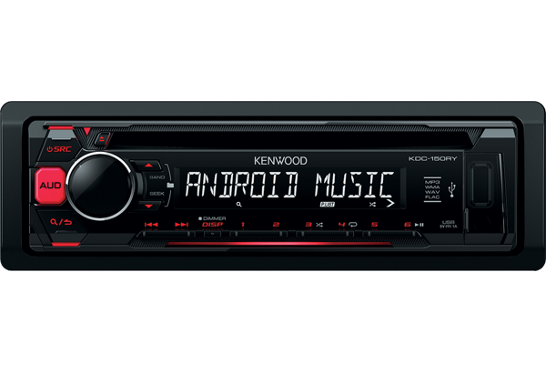Kenwood KDC-150RY Красная подсветка кнопок, CD/USB/радиотюнер, FLAC, Android, 2 пары линейных выходов, переключение тыл/саб, съемная передняя панель