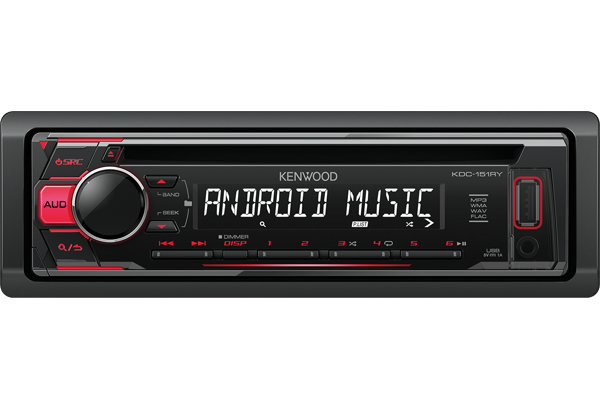 Kenwood KDC-151RY Красная подсветка, 2 пары лин вых, 3-полосный парам. эквалайзер, FLAC, Android