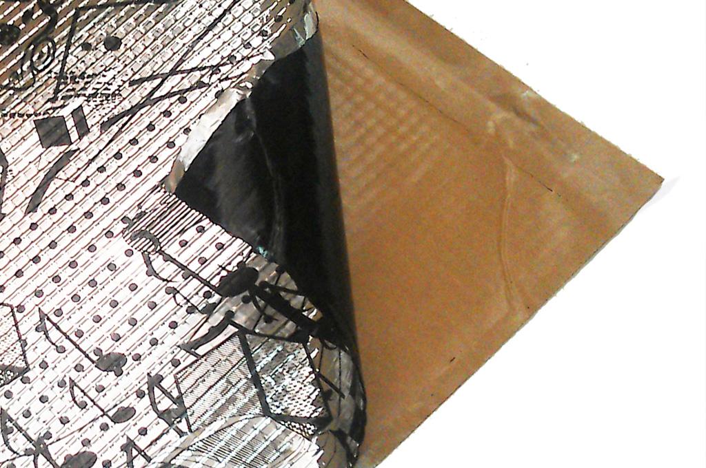 Высокоэффективный вибропоглощающий материал. Состоит из суперлегкого полимерного слоя, армированного алюминиевой фольгой. За счет своей легкости идеально подходит для обработки дверей и крыши.